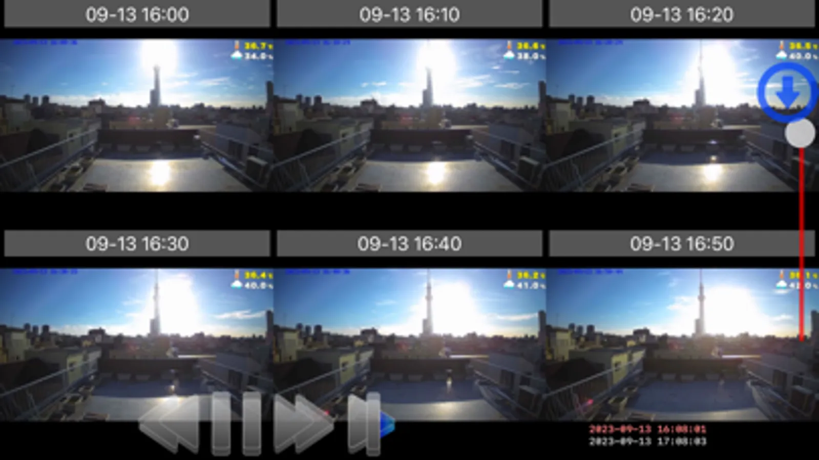 ・Rewind/fast forward 24 hours of one camera