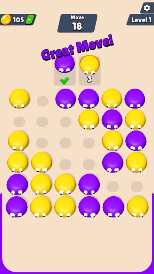 You choose a pawn and jump over another pawn and clear it from board. It is best to make a lot of jumps with one move. This game inspired from peg solitaire and checkers. We inspired from their addictive mechanic and make it more fun. Easy controls, hundreds of levels, no ads