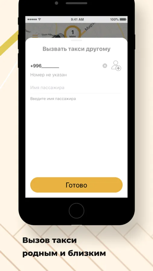Используйте опцию “Вызвать такси другому” в разделе “Пожелания” и укажите его номер телефона. Когда такси подъедет, на указанный номер придет СМС, а вам — сообщение в приложении.