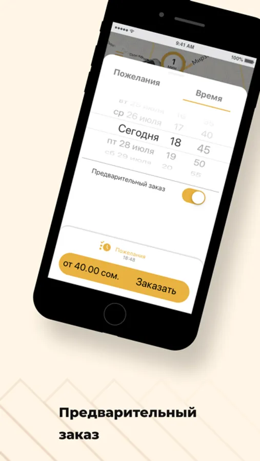 Выберите опцию “Предварительный заказ”. Поиск автомобиля начнется незадолго до заказа поездки, и автомобиль приедет к назначенному времени. Также вы будете заранее знать стоимость поездки.