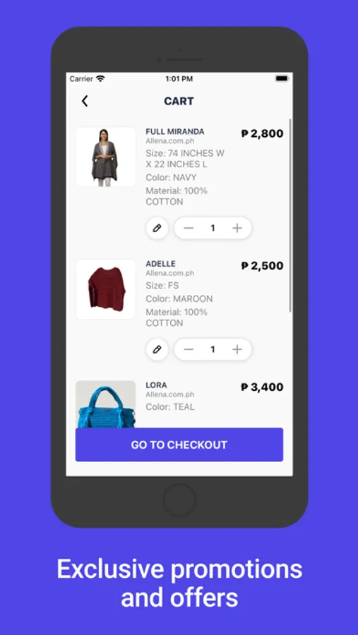 Take Allena with you wherever you go. With our app, shopping directly from your phone is easier than ever before.