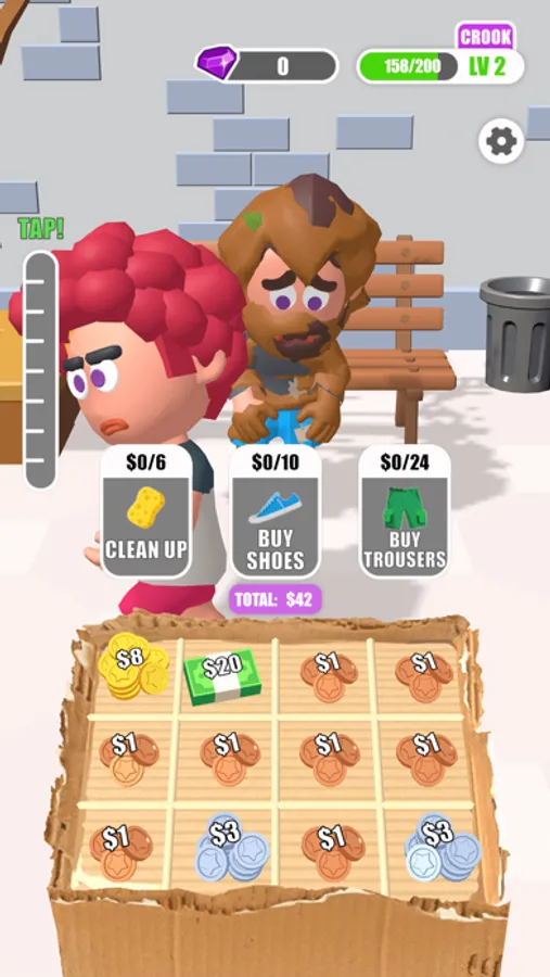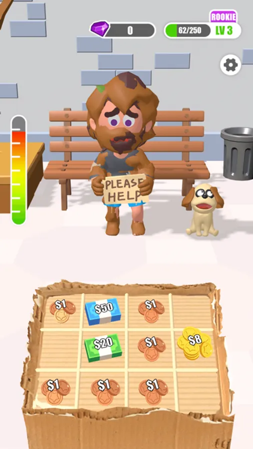 With each successful panhandling venture, you'll accumulate meager coins that will serve as your initial investment. As you accumulate wealth, the world around you starts to change, you even can upgrade your appearance!!