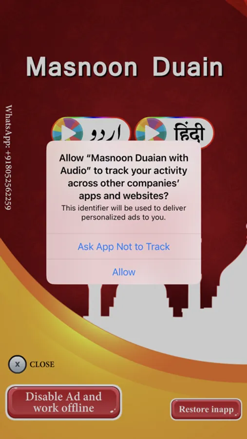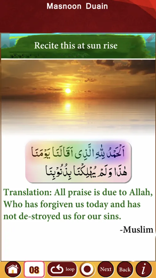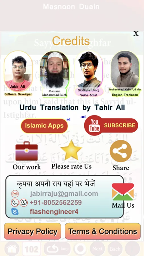 Masnoon Duain with Audio app has Duain in three languages Hindi, Urdu, and English. Users can tap and listen easily.