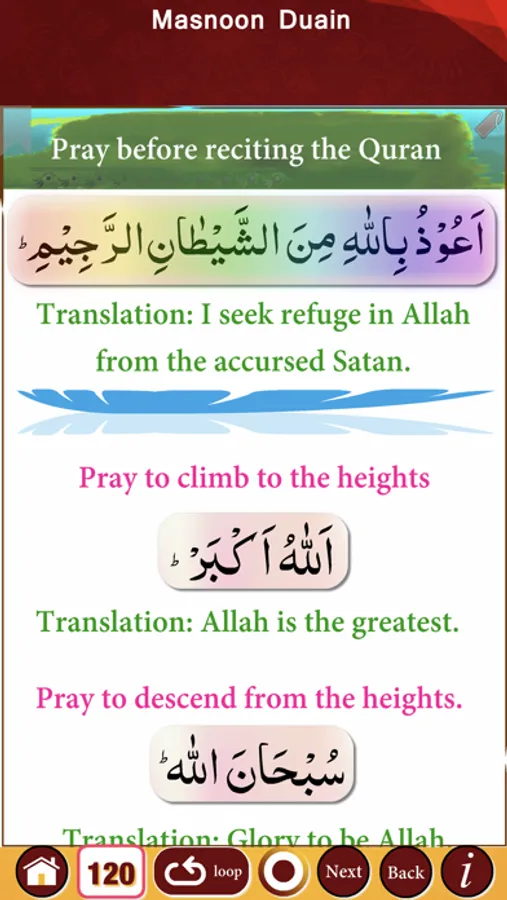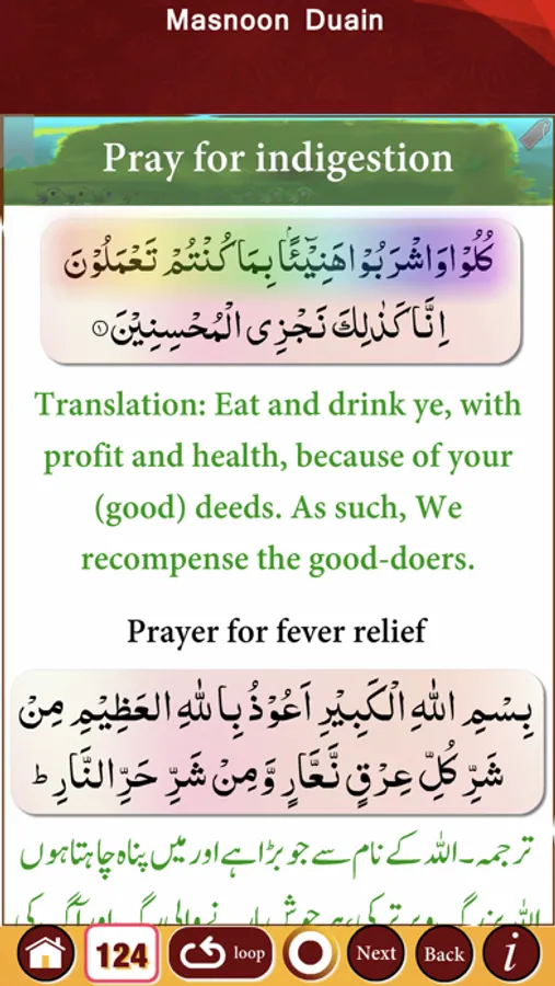 Masnoon Duain is fully equipped with essential Qurani duain which are practiced over various events and ceremonies for example for funerals, sleeping and waking up, drinking and eating, soul satisfaction, going and coming from the mosque, dua after offering prayers, and much more.