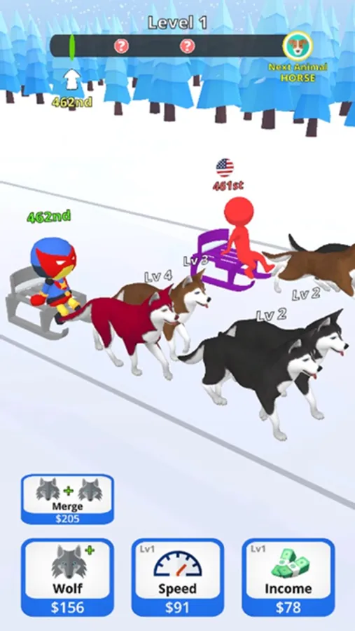 Add new dogs and merge them. Upgrade your speed and run faster!
