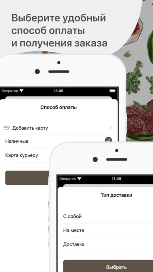Укажите время, когда хотите прийти за своим заказом или выберите доставку с указанием времени и адреса доставки.