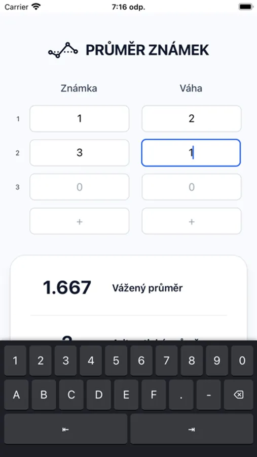 Hledáte nástroj na výpočet váženého a aritmetického průměru? Naše kalkulačka je přesně to, co potřebujete! Převádí čísla se speciálními znaky, jako je "(1-)", a písmena, například "(A)", počítá průměr procent a umožňuje hromadný import hodnot. Díky speciální klávesnici nemusíte přepínat mezi klasickou a numerickou klávesnicí. Navíc, díky velkým tlačítkům vpřed a zpět se můžete extrémně rychle pohybovat mezi jednotlivými políčky.