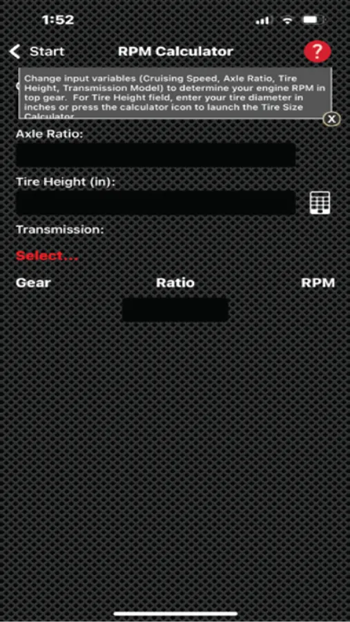 The TREMEC Toolbox App includes: Driveline Angle Finder, RPM Calculator, Tire Size Calculator, and Vehicle Speed Calculator. This Toolbox is great for planning your rig, allowing you to see what kind of performance to expect from different combinations!