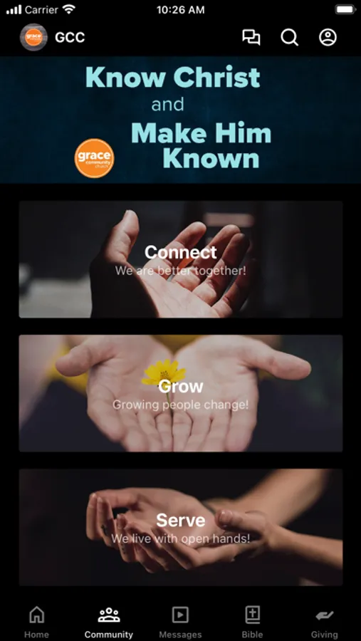 This app will help you stay connected with the day-to-day life of Grace Community Church. With this app you can: watch or listen to past messages; stay up to date with push notifications; share your favorite messages via Twitter, Facebook, or email; and download messages for offline listening.