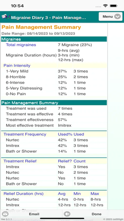 -Graph your patterns of experiences, email reports, including graphical attachments to your doctor so that they can help you adjust