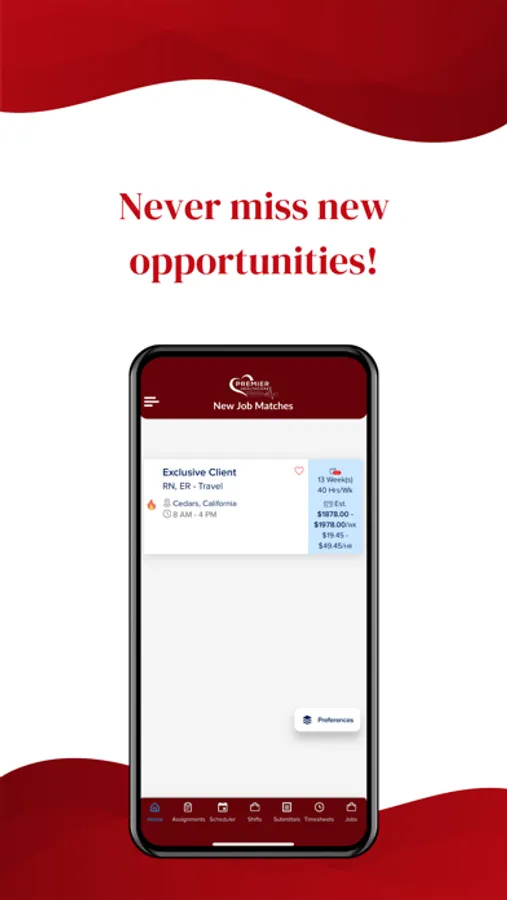 Premier Healthcare Staffing Solutions is the essential mobile platform tailored for clinicians seeking their next career move. Quickly discover opportunities that match your expertise, schedule preferences, and desired locations.