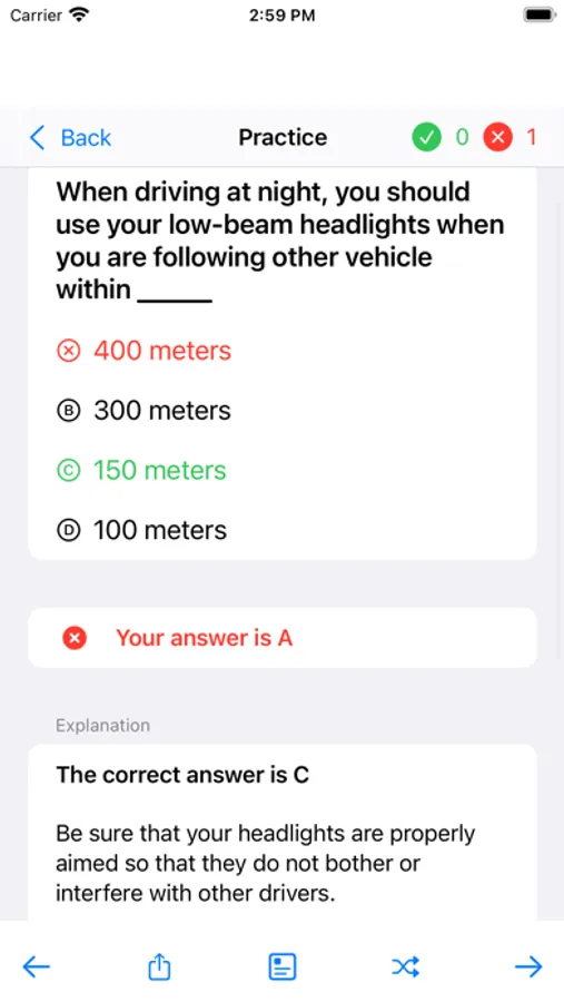 "Yizi-Driving" will record questions you answered wrong during practice. And you can review them later on. Make sure you won't make mistakes again.