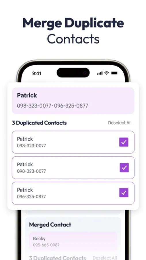 · Clear Contacts: Streamline your contact list with just a few taps, removing duplicates.