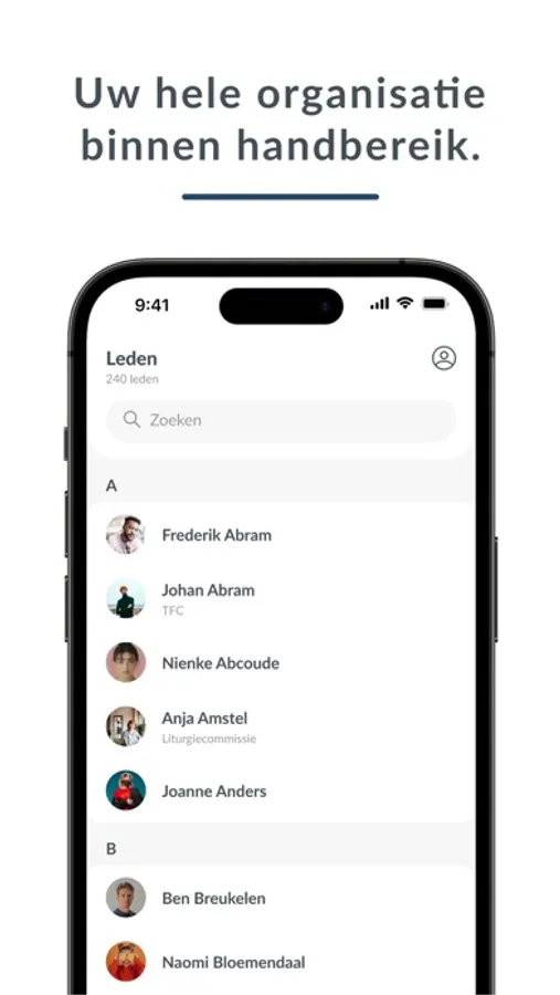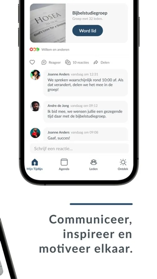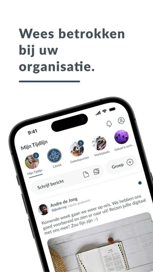 Thanks to our unique group structure, we can communicate better. With the entire community, but also among ourselves. You can add groups yourself and invite people to join. A smart timeline ensures that you see personal and relevant information.