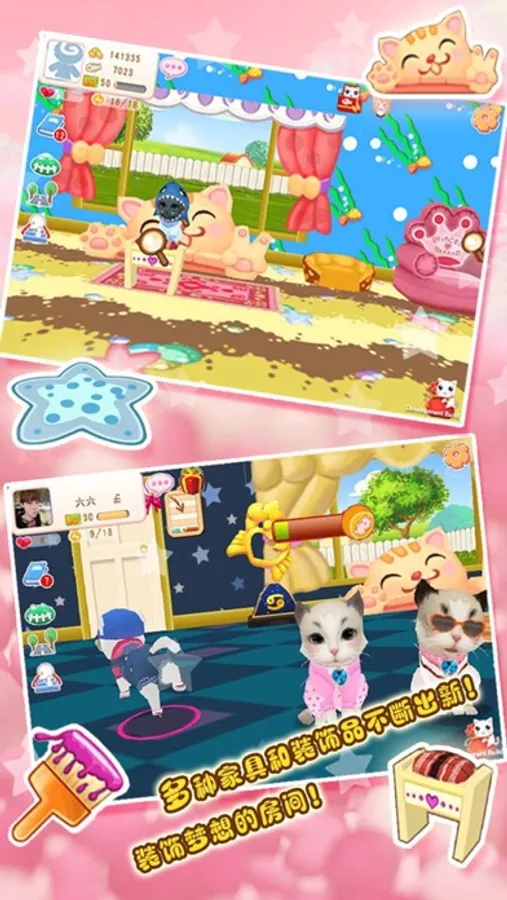 不同性格的猫咪供玩家选择,白色安哥拉猫,布偶猫,俄罗斯蓝猫,虎斑折耳猫,狸花猫,黑猫…任意选择选择属于你自己的可爱小猫,把它带回家。