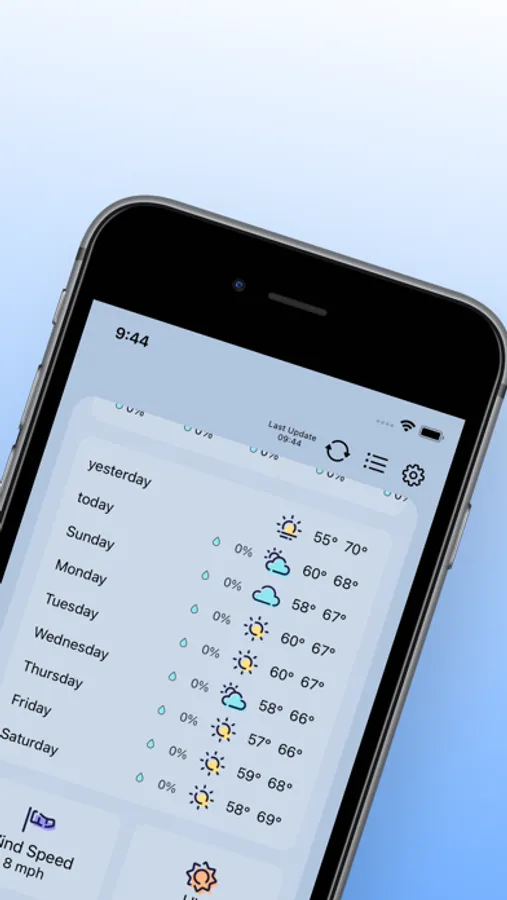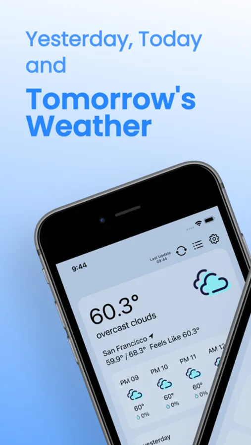 Yester provides you with the weather for yesterday, today, and the upcoming week.