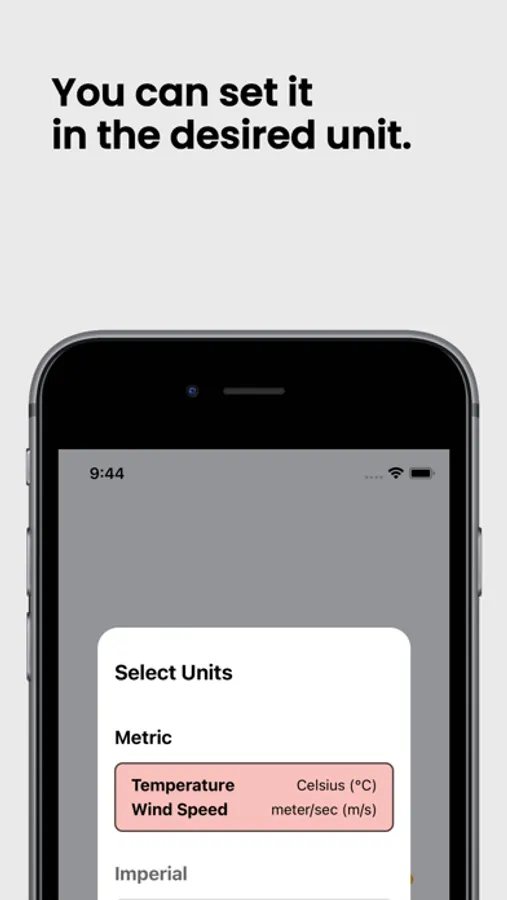 The app supports both the metric and imperial systems for weather units.
