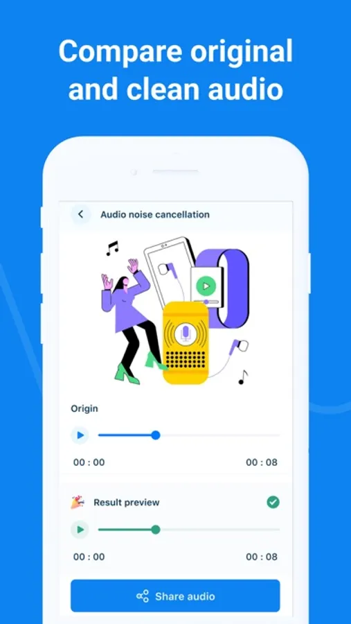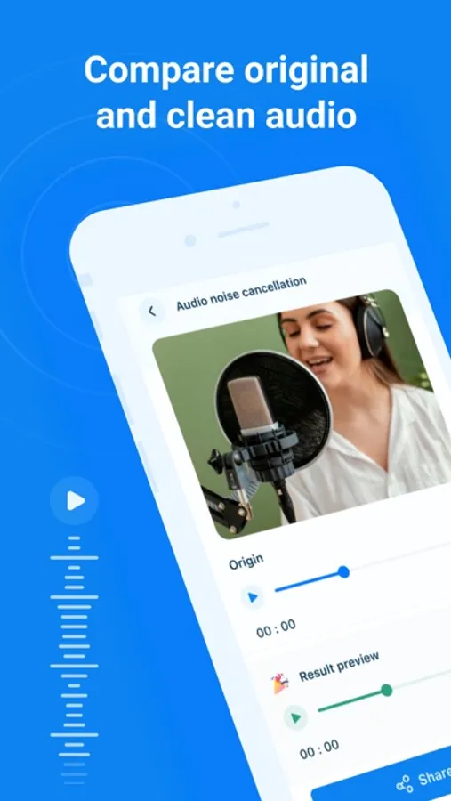 effortless background music removal. The unique algorithm cancels out unwanted sounds, producing tracks with crystal clear voice.