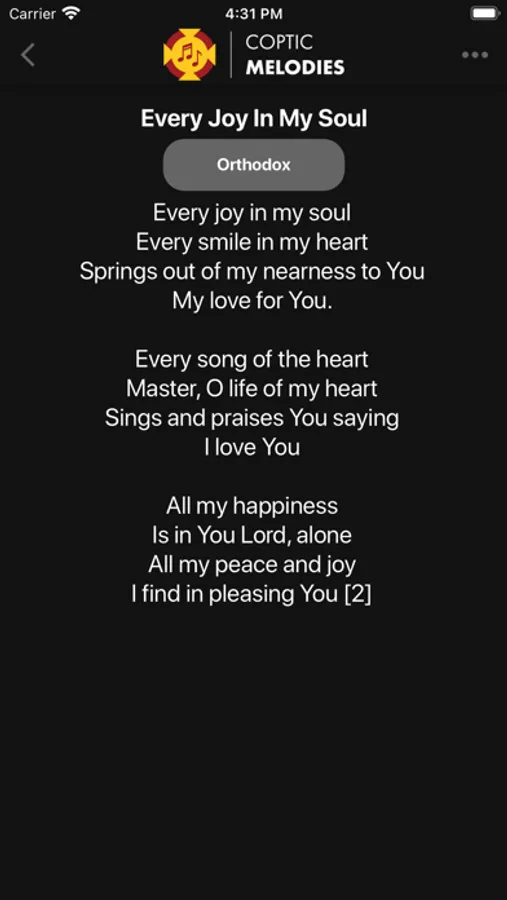 Coptic Melodies is an open library for Coptic Songs Lyrics. People can add new songs, edit an old one, add categories for searching or other sources like video or audio links to sing along. Songs will be shared and open for anyone to enhance while also being moderated by admins.