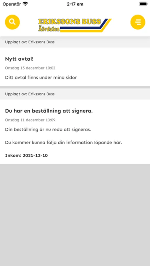 Det här är Erikssons Buss-APPEN, din trogna följeslagare som håller dig uppdaterad och förenklar kommunikationen för kunder och medarbetare hos Erikssons Buss