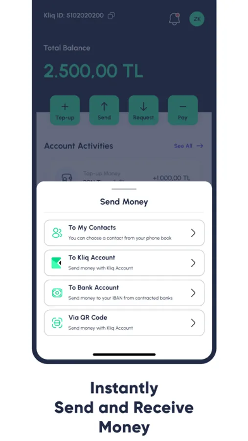 Need money suddenly? Send a message to your loved ones to request money, and they can send it to you easily. If they’re not using Kliq yet, no worries, you can invite them right away.