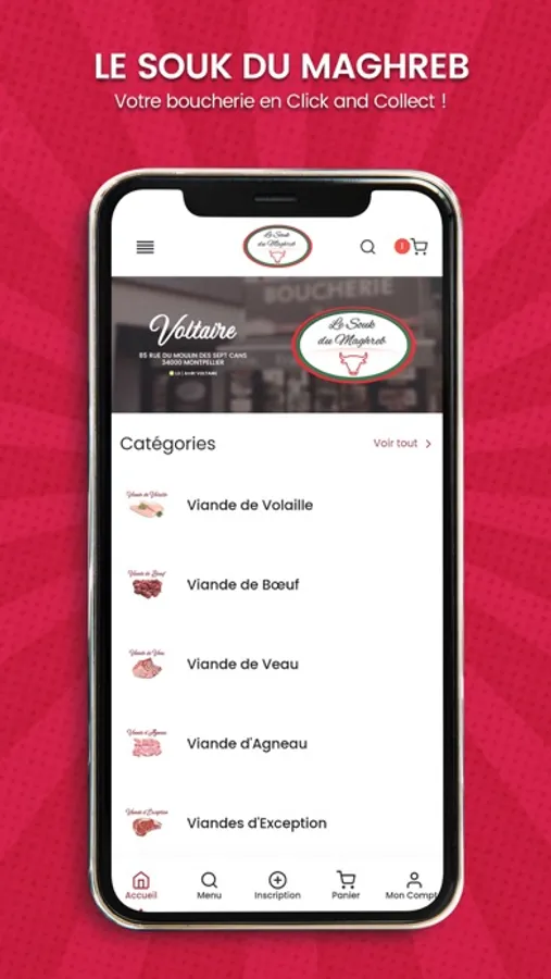 Application mobile officielle de la boucherie Souk Du Maghreb à Plan Cabanes vous permettant de commander vos produits et de vous faire livrer ou en Click&Collect !