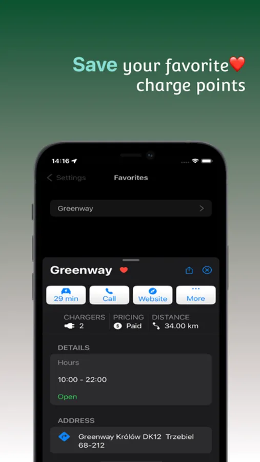 - Favorite Stations: Users can mark charging stations as favorites, making it quicker for them to find stations they frequently use.