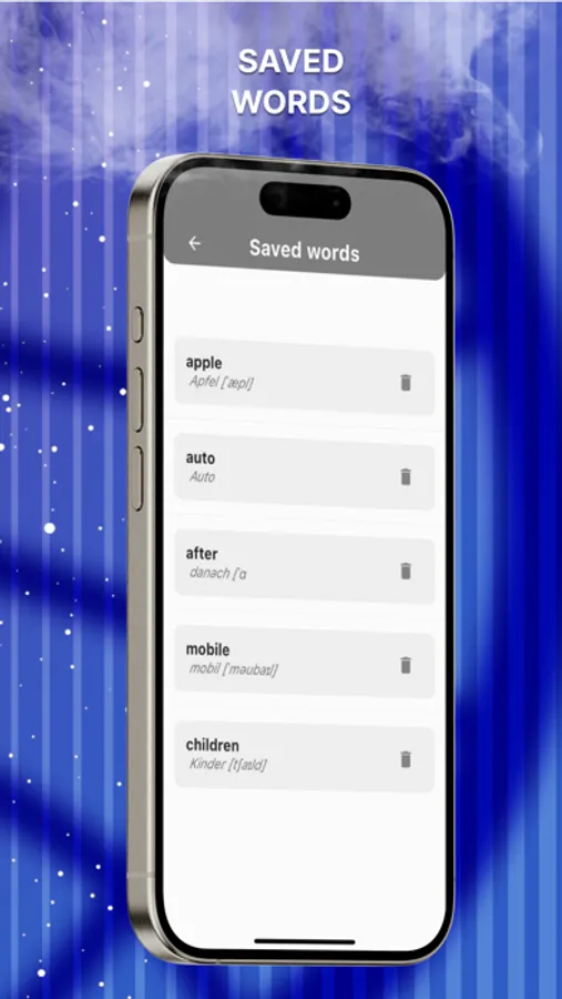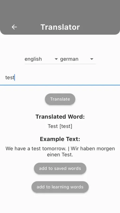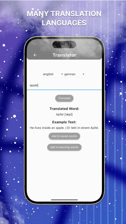 Word Saving: Users can save translated words and phrases in two separate lists. One list is dedicated to learning and acquiring new words, while the other is for revision and reinforcement of knowledge.