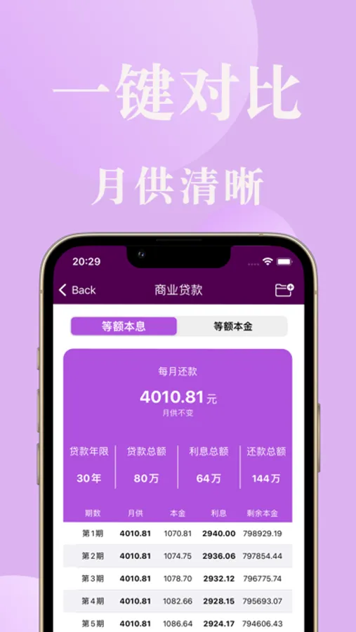 还能同步比对等额本金、等额本息;