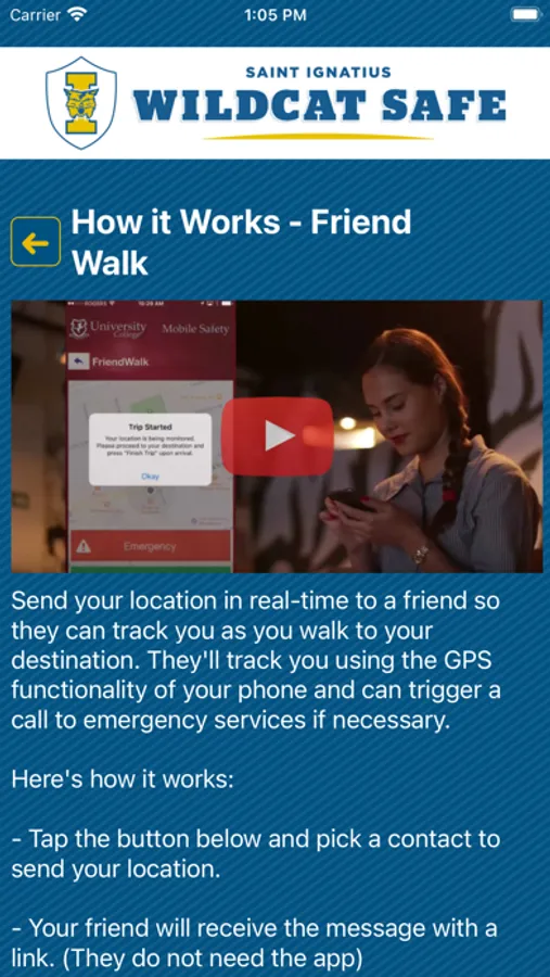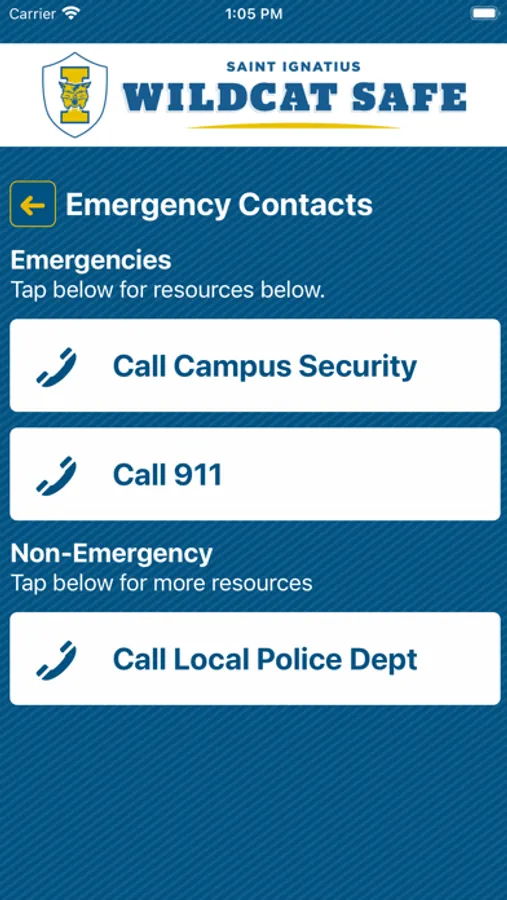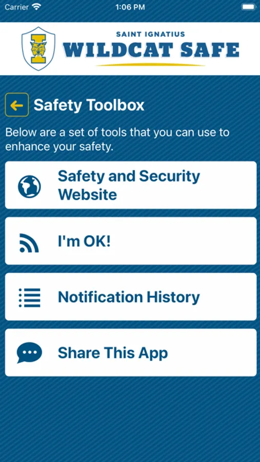 Wildcat Safe is the official safety app of Saint Ignatius High School. It is the only app that integrates with Saint Ignatius High School's safety and security systems. Campus Security has worked to develop a unique app that provides students, faculty and staff with added safety on the Saint Ignatius High School campus. The app will send you important safety alerts and provide instant access to campus safety resources.