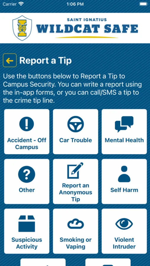 - Tip Reporting: Multiple ways to report a safety/security concern directly to Saint Ignatius High School security.
