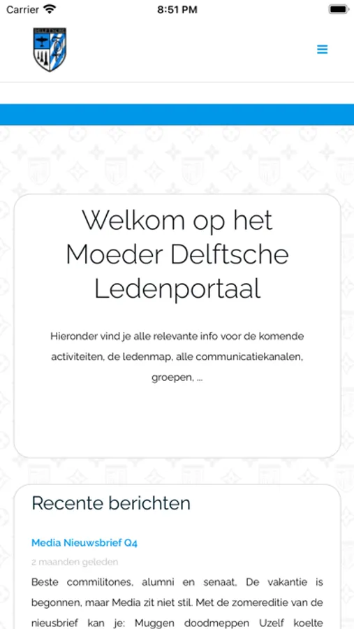 Deze app is bedoeld voor alle leden van studentenvereniging Moeder Delftsche. Via deze app zal communicatie over activiteiten, inschrijvingen, foto’s, … volgen. De app is een uitbreiding van de website.