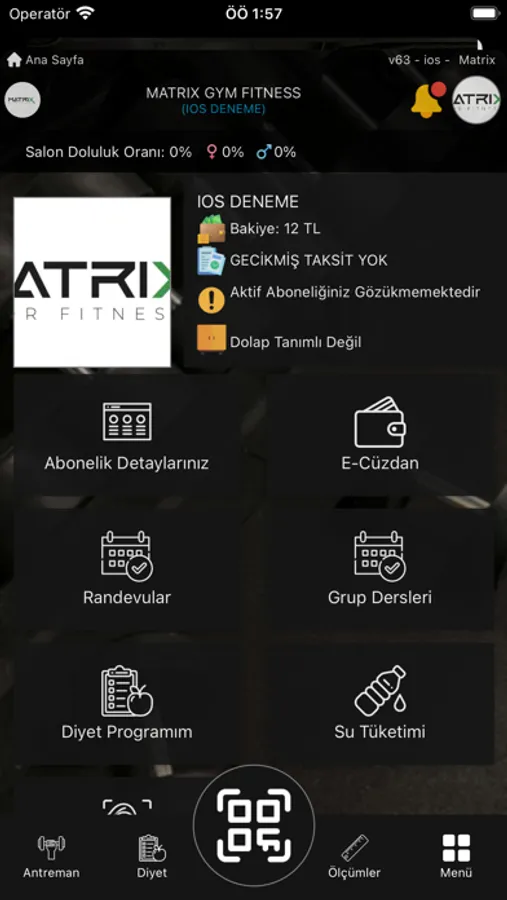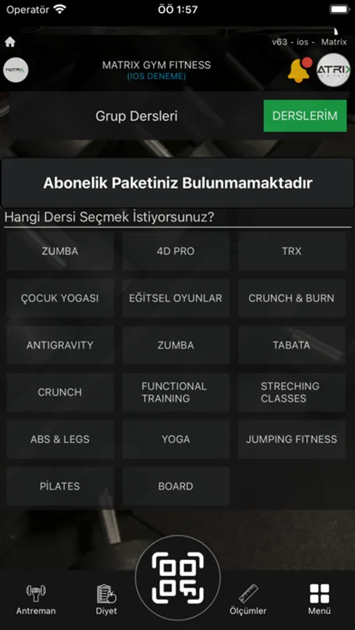 Abonelikler: Spor aboneliğinizi "Matrix" kullanarak takip edebilir, kaç gün kaldığını, kalan seansları görebilir, mevcut paketler ve fiyat listeleri hakkında bilgi edinebilirsiniz.