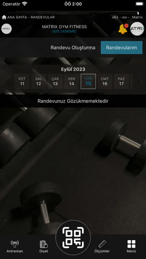 Randevular: Spor kulübünde adınıza yapılan tüm randevuları "Matrix" kullanarak takip edebilirsiniz.