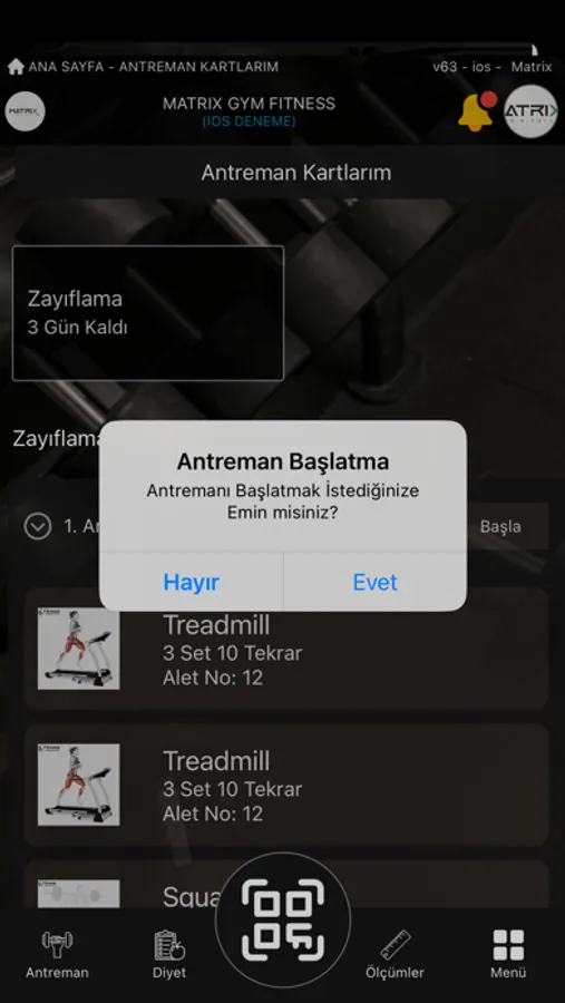 Bildirimler: Spor merkeziniz tarafından sağlanan tüm bildirimleri "Matrix" uygulaması aracılığıyla takip edebilirsiniz.