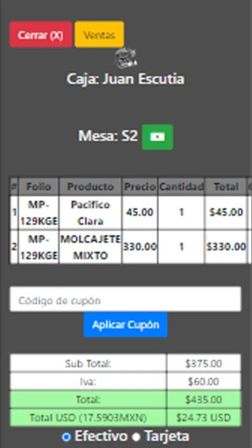 App para peticiones de comandas de un restaurante en funcionamiento.