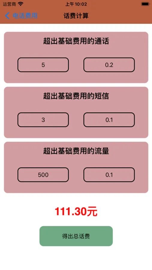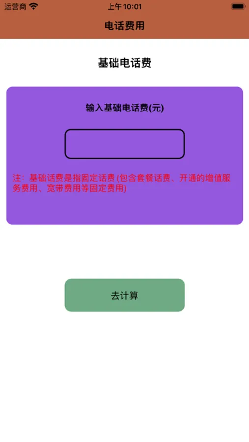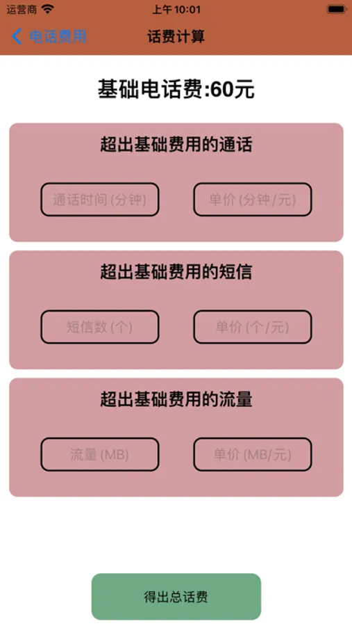 您是否总感觉您的电话费不准确,这里帮您计算您用的话费情况,让您更加方便的了解您的电话费,帮您快熟计算,让您对您的电话费使用更加掌握