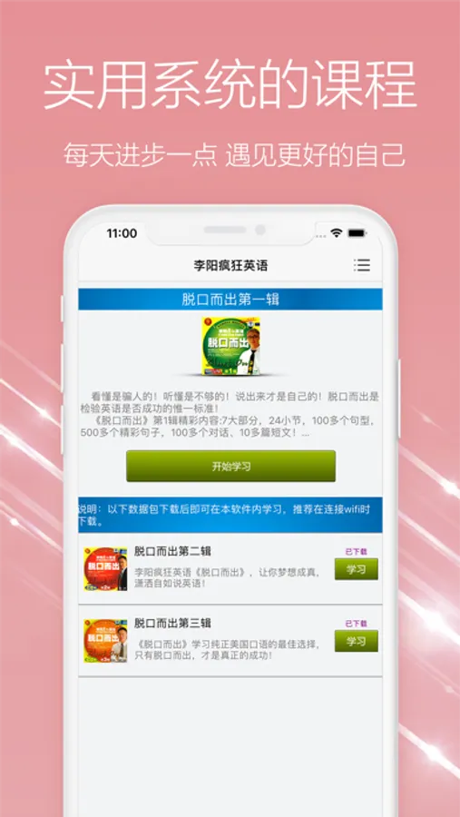 当播音员、广告配音员、翻译,用英语发表演讲、主持国际会议;成为国际一流的导游、谈判高手、国际商务专家,这些都不再只是梦想;李阳疯狂英语《脱口而出》,让你梦想成真,潇洒自如说英语!