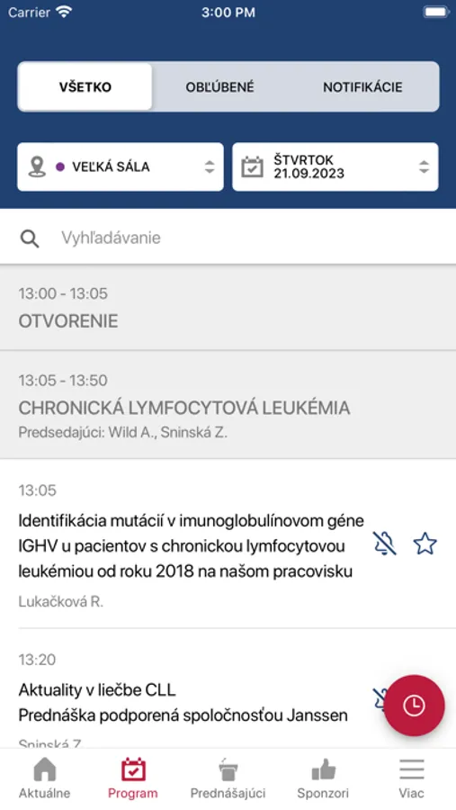 Odborný program kongresu "BANSKOBYSTRICKÉ HEMATOLOGICKÉ A TRANSFÚZIOLOGICKÉ DNI 2023" ktorý sa koná v dňoch 21 až 23 septembra 2023 v hoteli Partizán na Táloch