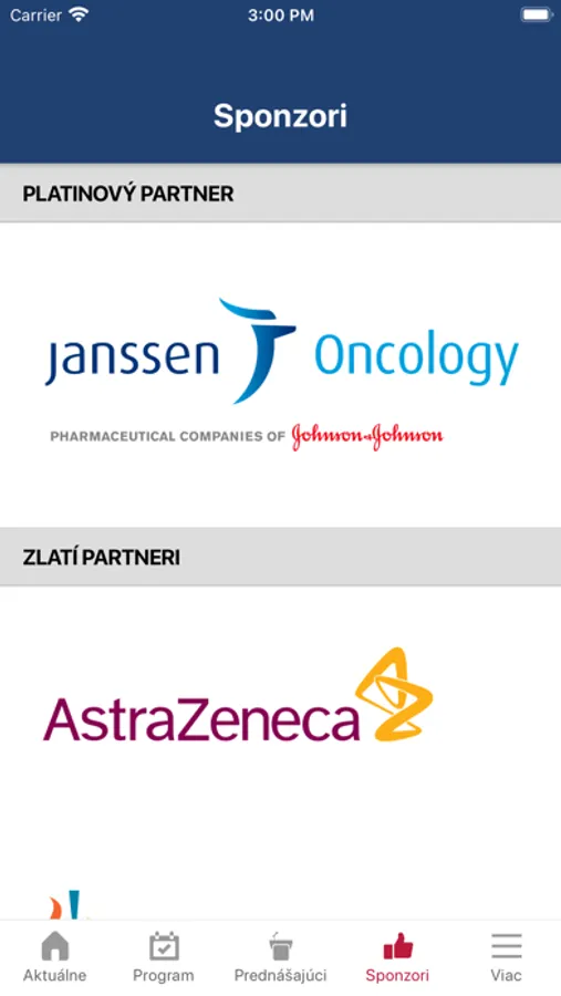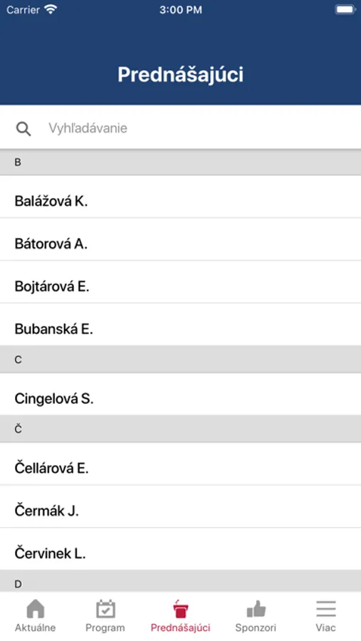 Aplikácia obsahuje aj zoznam prednášajúcich v ktorom je možné vyhľadávať, zoznam sponzorov ako aj zoznam abstraktov ktoré na kongrese odznejú.