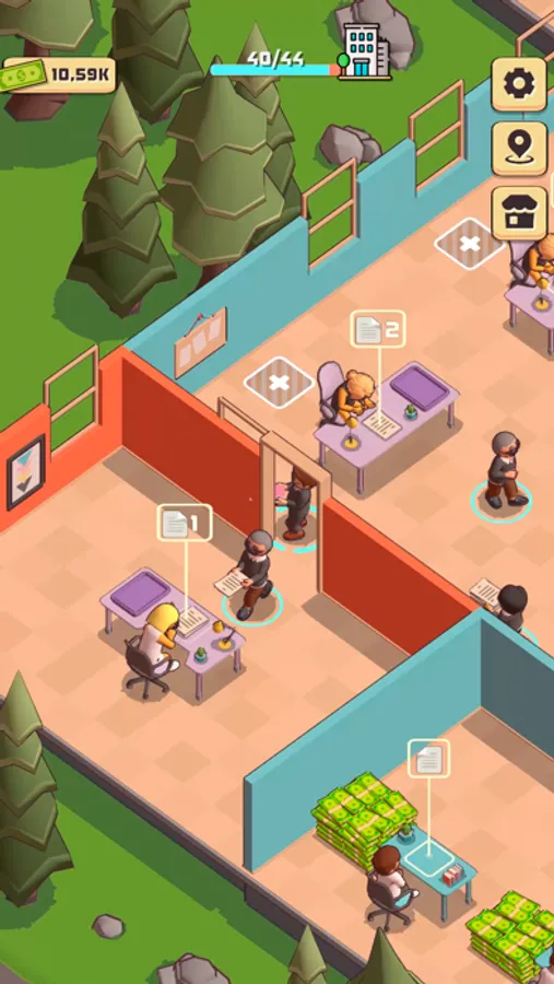 Office Tycoon offers an engaging idle gameplay experience. Even when you're not actively playing, your office continues to generate profits. Strategically invest your earnings in new rooms, furniture, and upgrades to boost your income. Keep an eye on your resources and make smart decisions to maximize your efficiency.