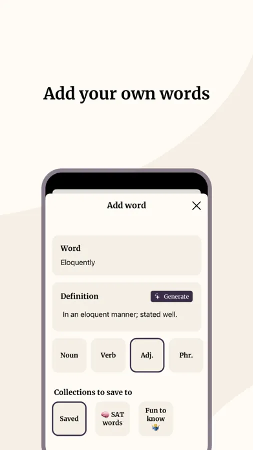 - Create Custom Collections: Personalize your learning experience by creating collections of words that matter most to you. Organize them by theme, difficulty level, or language, whatever you think is right!