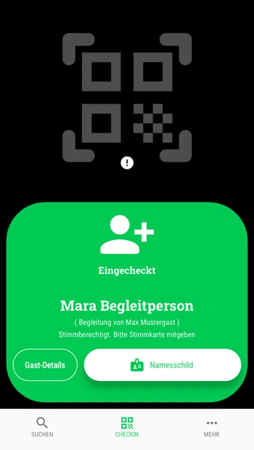 Die App zeigt Dir schnell und übersichtlich, ob es sich um ein gültiges Ticket handelt oder der Gast schon eingeloggt ist.