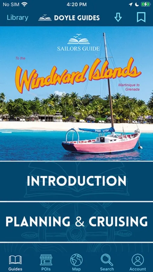 I was so excited to have a digital Doyle guide…Until I tried to use it. Every time you open the app and you have to go through all the available guides to find the one you purchased. Then it does not work like the book. A simple online PDF format would be better. If it just had a contents / chapter page that then linked you to each chapter. Or an interactive Index. I tried using the search function and after hours of trying various keywords, could find nothing on very obvious topics (eg Cousteau Marine Reserve in Guadeloupe). The only thing that is relatively simple to find is anchoring / approach info. Gave up and went to the chandlery to try and get a hard copy…which it seems they no longer stock. Subscription cancelled and back to google it is. Perhaps the developers could have a peek at how the Digital Lonely Planet Guides work.