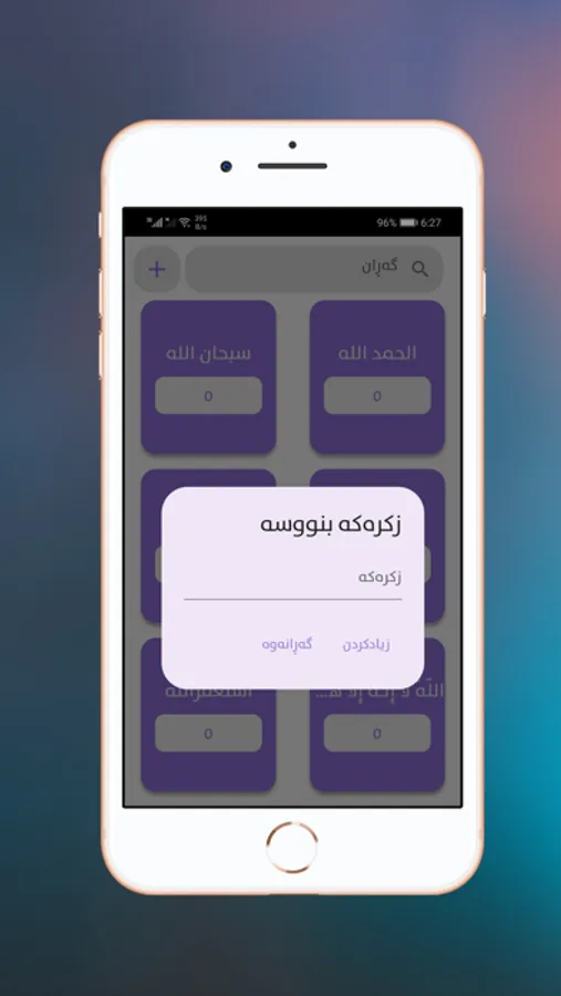 زیکر بکە و ژمارەی زیکرەکە پاشەکەوت بکە و هەر زیکرێک کە دەتەوێت زیادی بکە