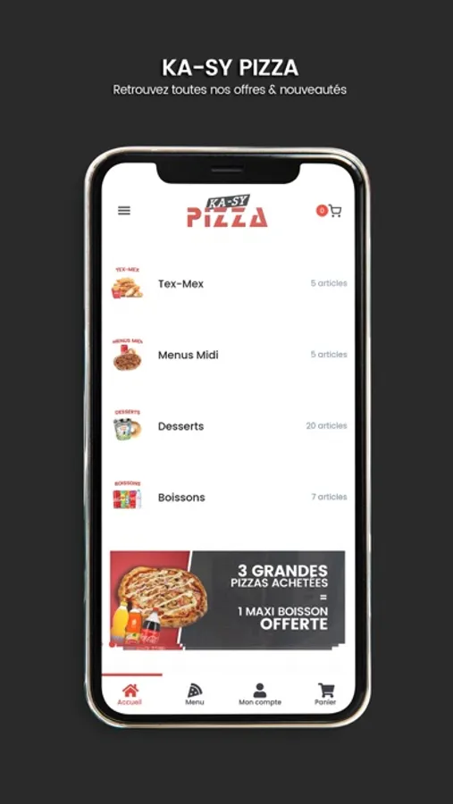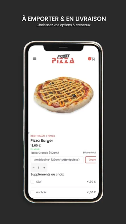 Votre application Kasy Pizzas vous permet de commander en ligne directement sans passer par le site web.