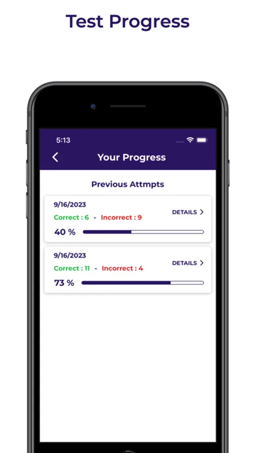 Users can track their progress to focus their studying on the areas. Tracking progress is made effortless as the app allows users to monitor completed practice tests, identify areas requiring more attention, and measure overall improvement.