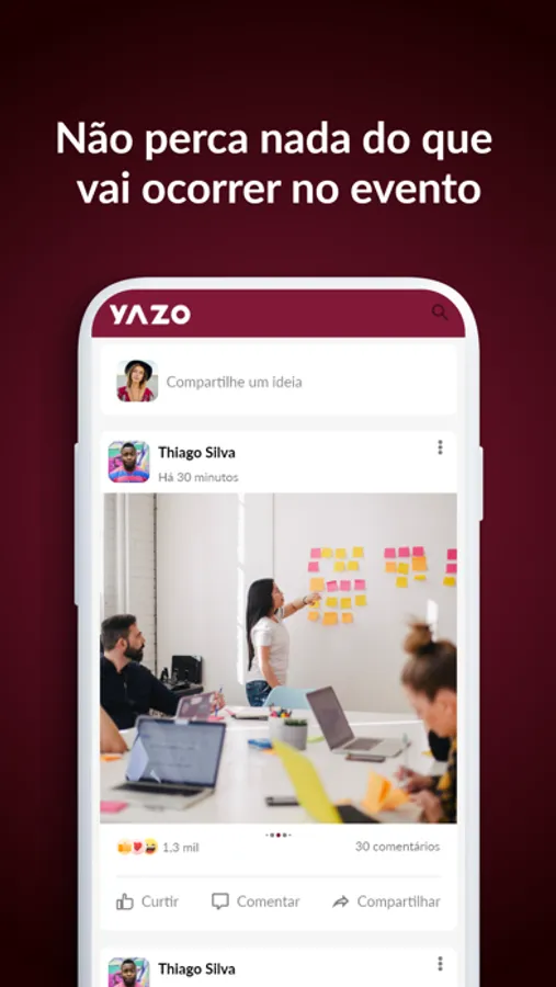 Com o aplicativo Yazo Business, você tem acesso a uma rede social exclusiva, pode fazer novos contatos, enviar perguntas aos palestrantes, trocar mensagens com outros participantes, enfim, interagir com a comunidade. Além disso, você pode consultar a programação, avaliar conteúdos, dar feedback e responder quizzes. Utilize o APP e aproveite ao máximo os recursos.