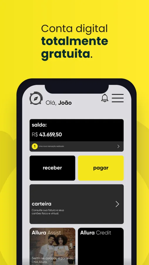 Bem-vindo ao Allura, o seu parceiro confiável na jornada para uma vida financeira descomplicada. Allura é mais do que apenas um aplicativo de conta digital; é uma experiência transformadora que simplifica e aprimora a maneira como você lida com o seu dinheiro.