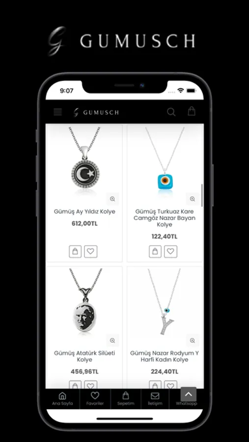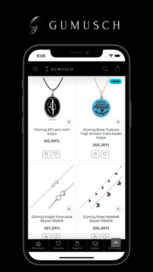 Gumusch uygulamasında neler var ? Gümüş bileklik, kolye, küpe, setler, tesbih, yüzük, hediyelik eşyalar, takı, aksesuar ve daha fazlası Gumusch uygulamamız ve web sitemizde.